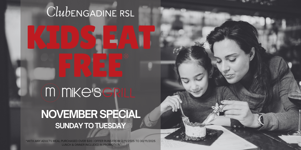 Promotion runs from 02/11/2025 to 30/11/2025. Please see Mike’s Grill staff for more details.